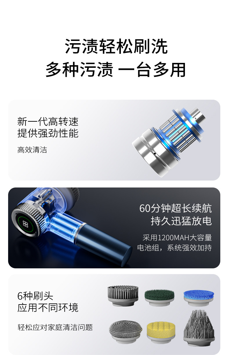 电动清洁刷多功能家用自擦厨房 白色