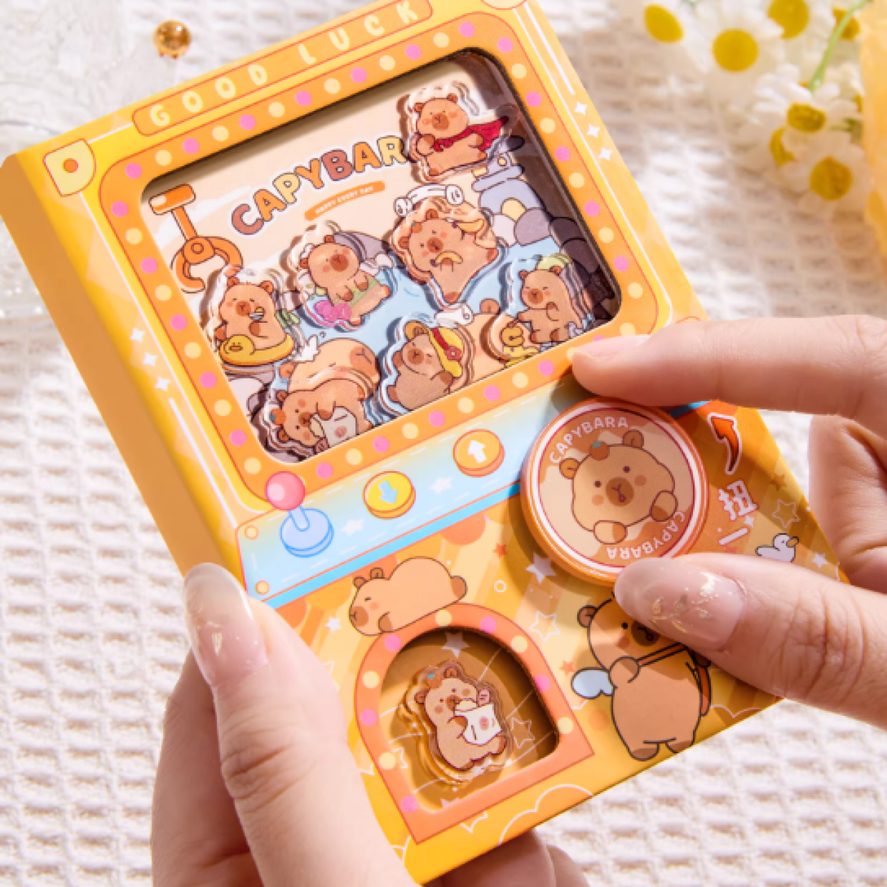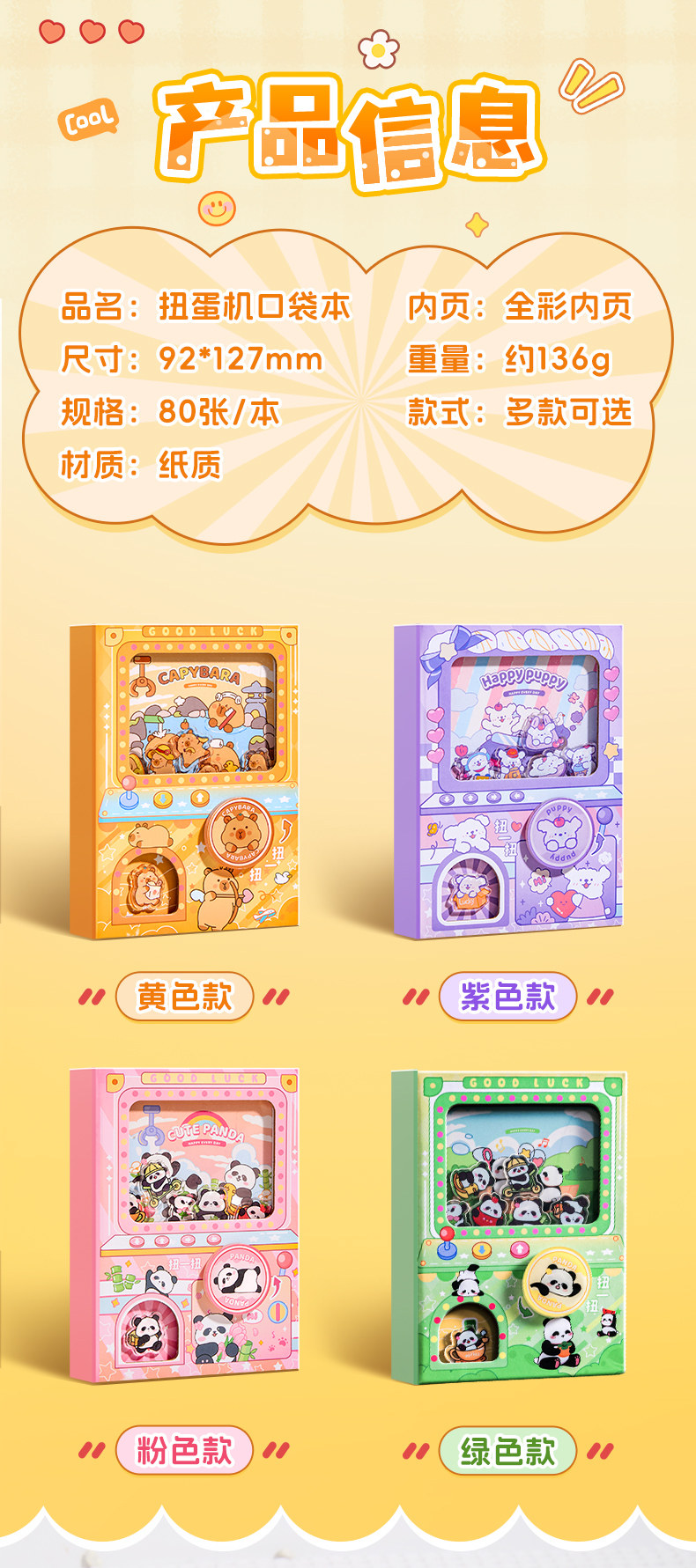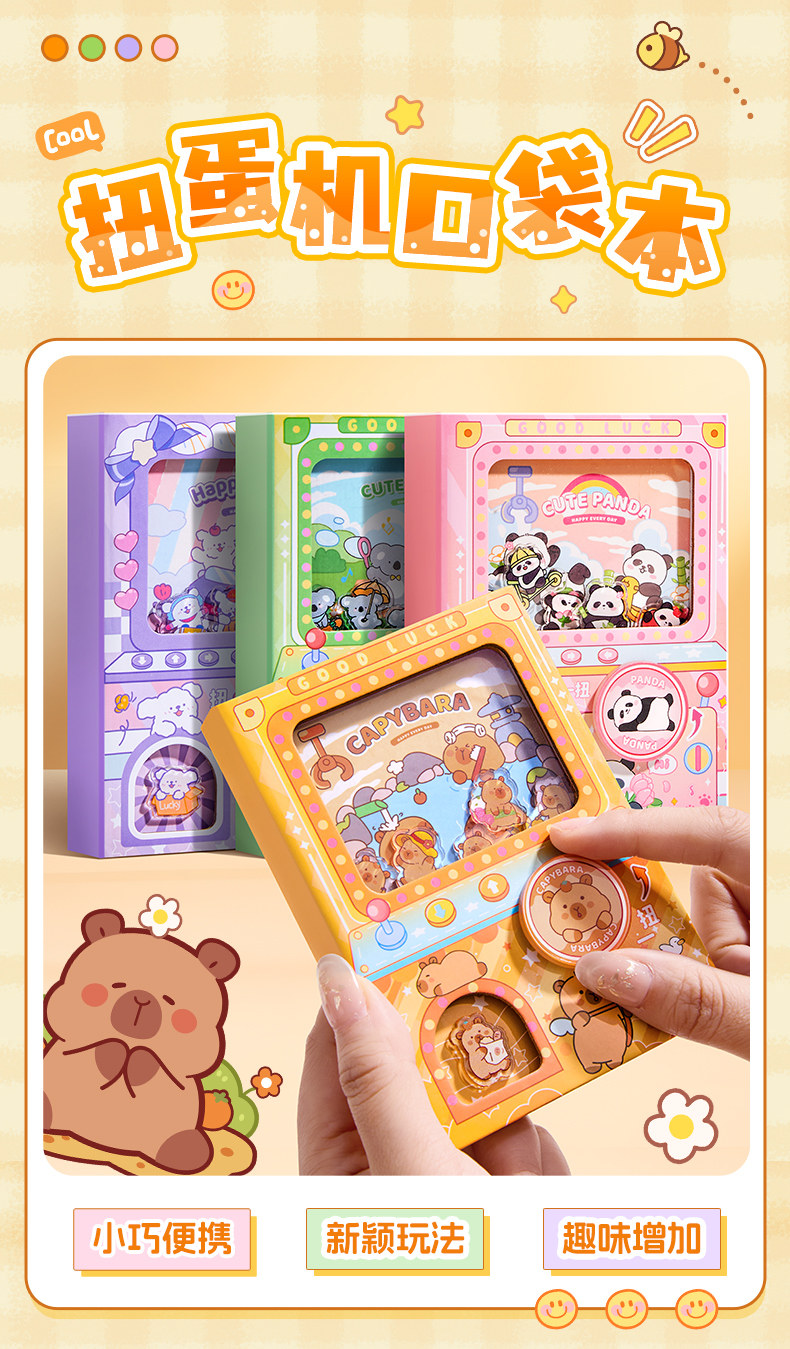卡皮巴拉迷你扭蛋机关本开学礼物奖励女孩子爱玩的玩具儿童益智口袋本 橘色