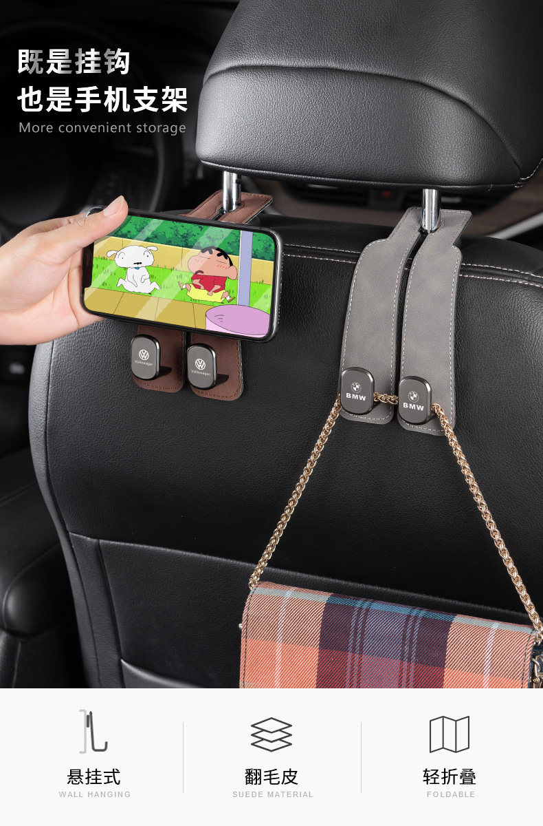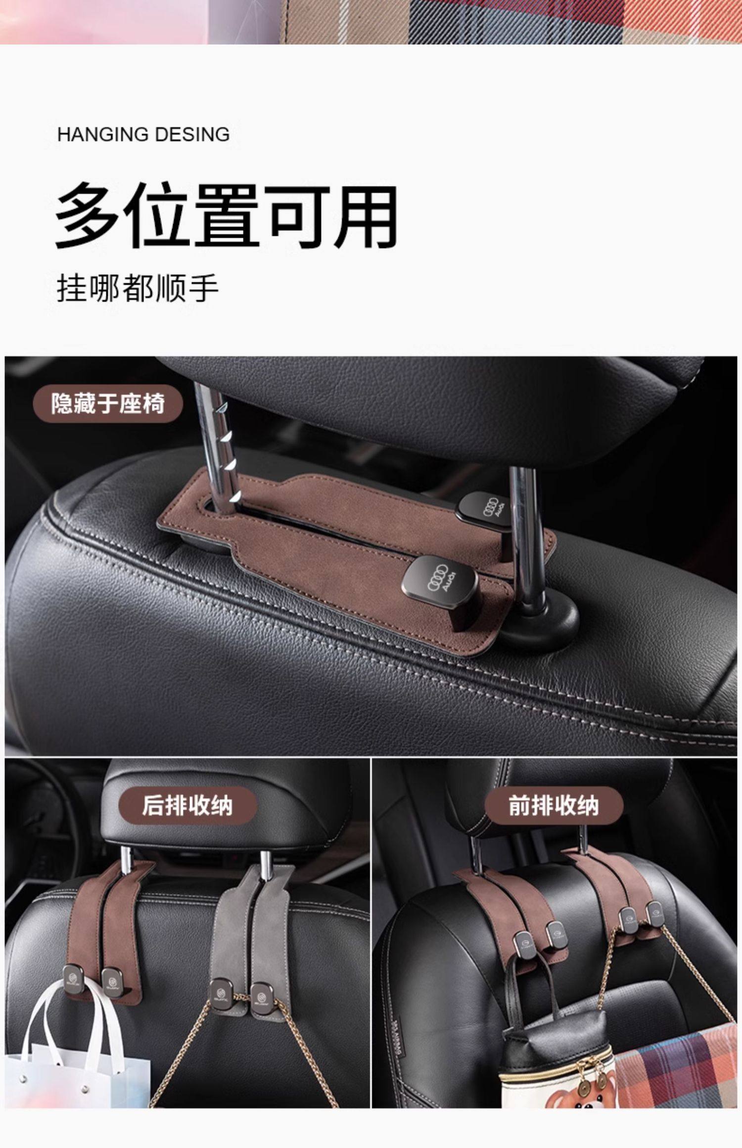 车载挂钩后排汽车内前排副驾驶座椅后背车用座位椅 灰色 一个装